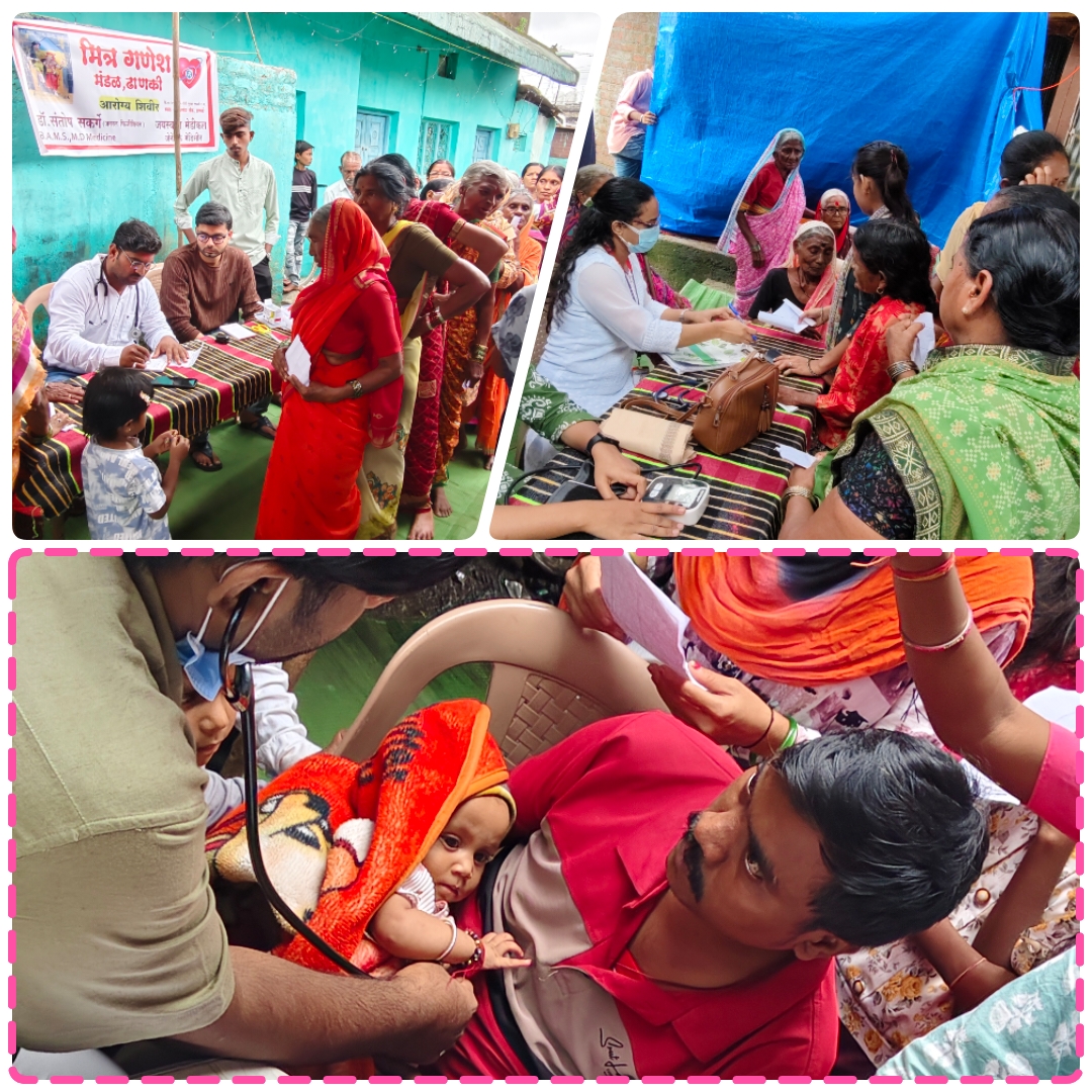 ढाणकी:- येथे दि.04/09/2025 रोजी मित्र गणेश मंडळातर्फ आरोग्य शिबिराचे आयोजन करण्यात आले होते. यावेळी शिबिरात नागरिकांची तपासणी करून मोफत औषध व सलाईचे वाटप करण्यात आले .यावेळी लहान मुलांना सुद्धा वाफारा देण्याची सुविधा उपलब्ध होती.शिबिरात 250 पेक्षा अधिक रुग्णांची तपासणी करण्यात आली या कार्यक्रमाच्या अध्यक्षस्थानी माजी कृषी उत्पन्न बाजार समितीचे सभापती बाळासाहेब चंद्रे पाटील,प्रभारी वैद्यकीय अधिकारी डॉ स्वाती मुनेश्वर,वैद्यकीय अधिकारी डॉ संतोष सकर्गे बालरोगतज्ञ डॉ मच्छिंद्र सुरमवाड व लक्ष्मीकांत जयस्वाल मेडिकल ,आरोग्य सेवक खोकले, प्रेमसिंग चव्हाण ,सहाय्यक शाम म्हेगंसे’बालाजी जाधव ,आरोग्य सेवक अविनाश रावते, मारोती सोनुने लॅब टेक्निशन,संजय राणे आरोग्य सेविका वंदना वाळूकर व आशा शिविका अनिता गुंडेवार, सुनीता भोसले,सपना गोपेवाड,सुमन पडोळे,अविना कोंडरवाड, छाया शेवाळकर व ढाणकी येथील प्रतिष्टीत नागरीक रामराव गायकवाड, शिवसेना शहर अध्यक्ष कांता वासमवार,भाजपा युवा मोर्चा पुसद जिल्हा अध्यक्ष रोहित वर्मा, काँग्रेस शहराध्यक्ष अमोल तुपेकर,भीम आर्मी जिल्हाध्यक्ष जॉन्टी विणकरे ,सुनील बुरसे,शेख हमीद भाई कुरेशी,किशोर ठाकूर यावेळी मित्र गणेश मंडळाचे पदाधिकारी