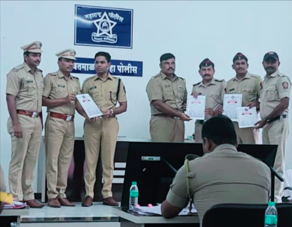 या उल्लेखनीय व अनुकरणीय कामगिरीबद्दल मा. पोलिस अधीक्षक साहेब, यवतमाळ यांच्या हस्ते बिटरगाव पोलीस स्टेशनमधील ठाणेदार पोलीस निरीक्षक पांडुरंग शिंदे ,पोलीस उपनिरीक्षक सागर अन्नमवार ,बीट जमदार रवी गीते, रोशन सरनाईक,