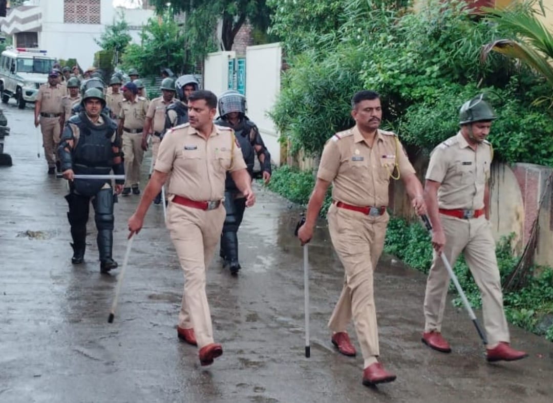 भर पावसात पोलिसांच्य पथसंचलन